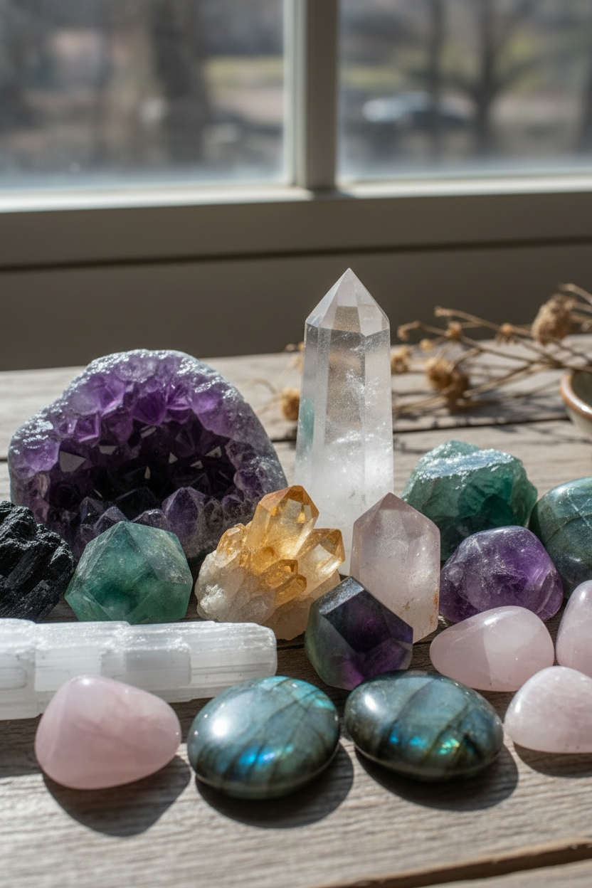 Meine Lieblingssteine spiegeln meine besondere Verbundenheit zur Natur und ihrer Schönheit wider. Der Mossachat fasziniert mich mit seinen grünen, erdigen Mustern, die wie kleine Landschaften wirken und für mich das Gefühl von Naturverbundenheit ausdrücken. Fluorit begeistert mich durch seine vielen Regenbogenfarben, die je nach Licht immer wieder ein neues Funkeln zeigen. Und nicht zu vergessen der Quarz, dessen klarer Glanz für mich wie frisch gefallener Schnee aussieht.