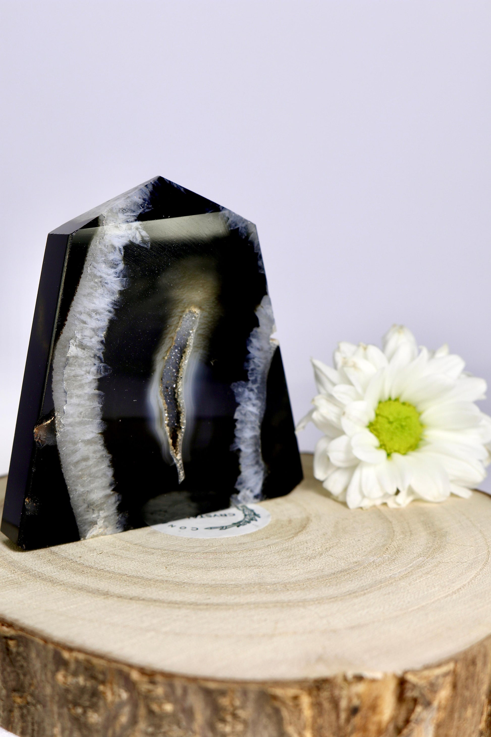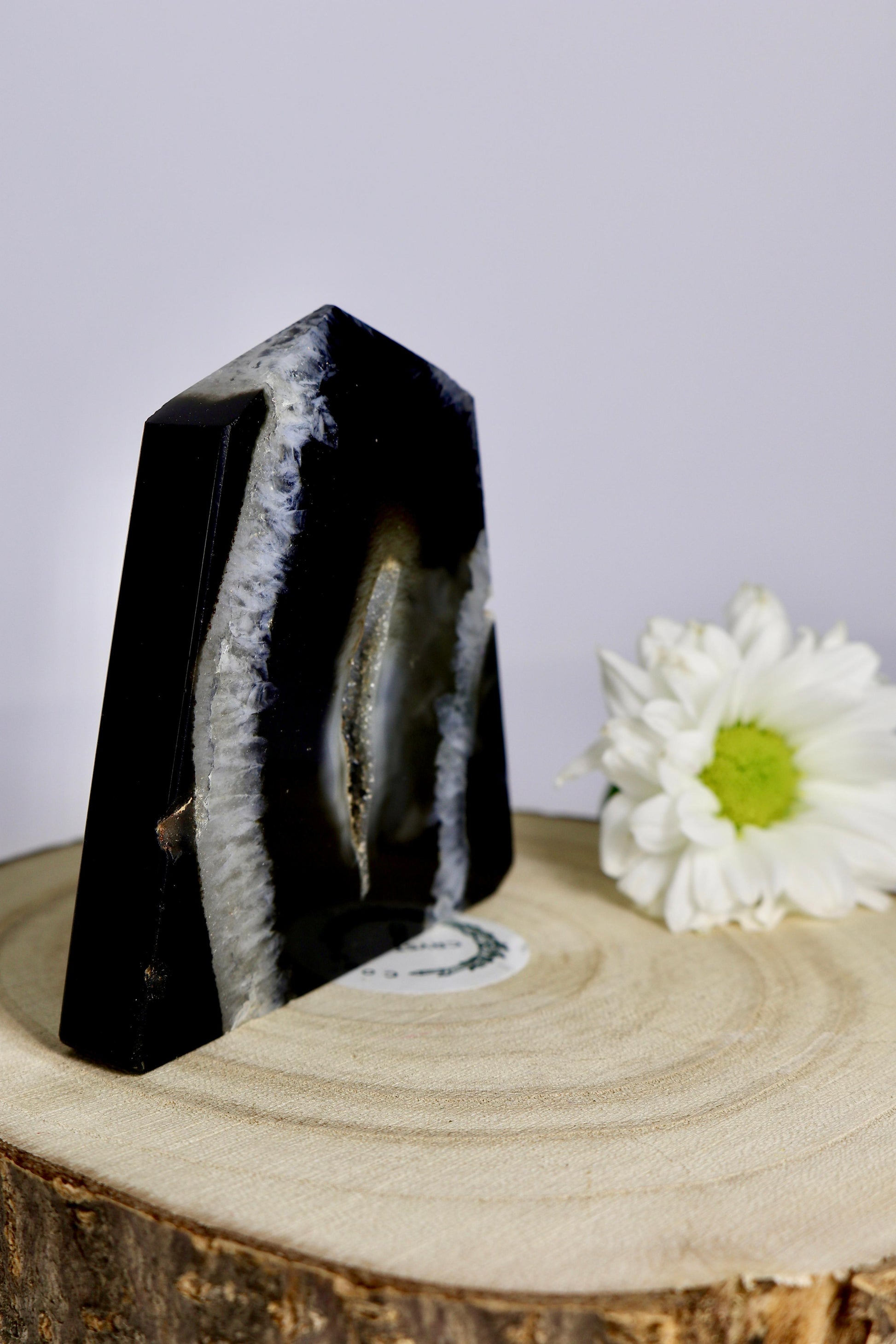Die schwarze Achat-Scheibe besticht durch ihre tiefen, intensiven Farbtöne und die natürlichen Bänderungen des Steins. Sie eignet sich ideal als dekoratives Element, Unterlage oder Sammlerstück und setzt elegante Akzente in jedem Raum.