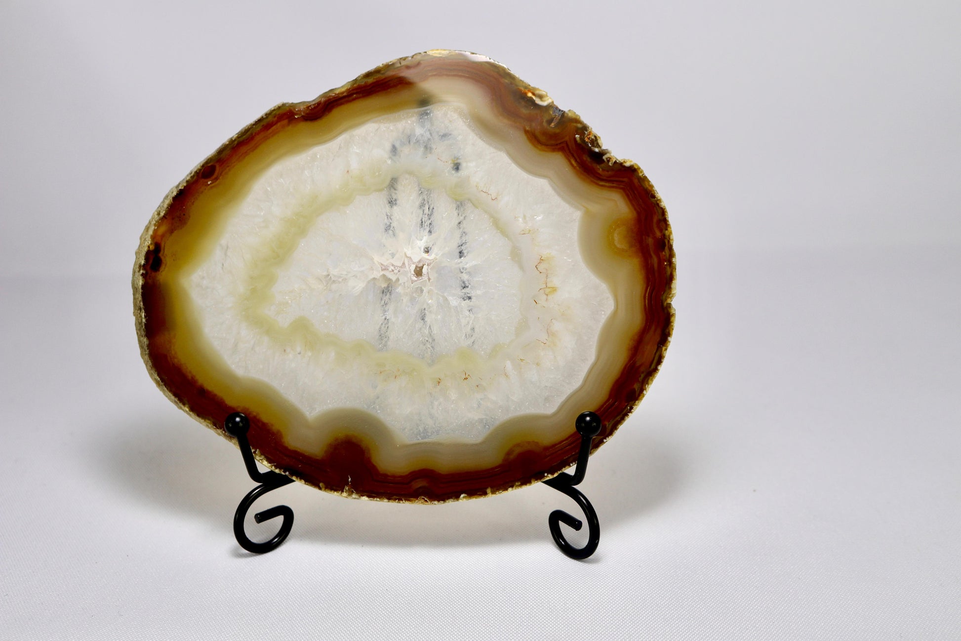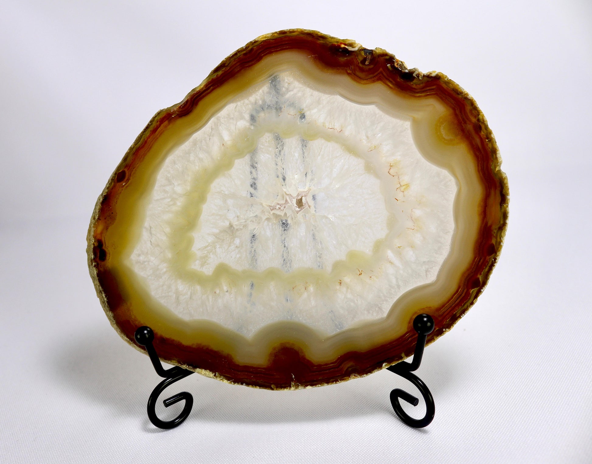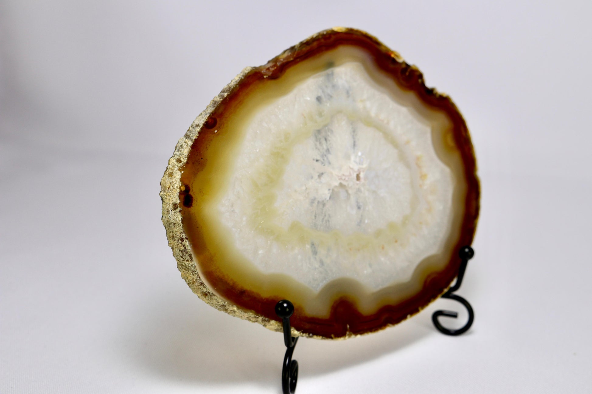 Achat-Scheiben beeindrucken durch ihre feinen Bänderungen und vielfältigen Farbnuancen. Sie eignen sich hervorragend als dekoratives Element, zum Aufstellen oder als natürlicher Blickfang im Raum. Jede Scheibe bringt die Einzigartigkeit des Steins auf besondere Weise zur Geltung.