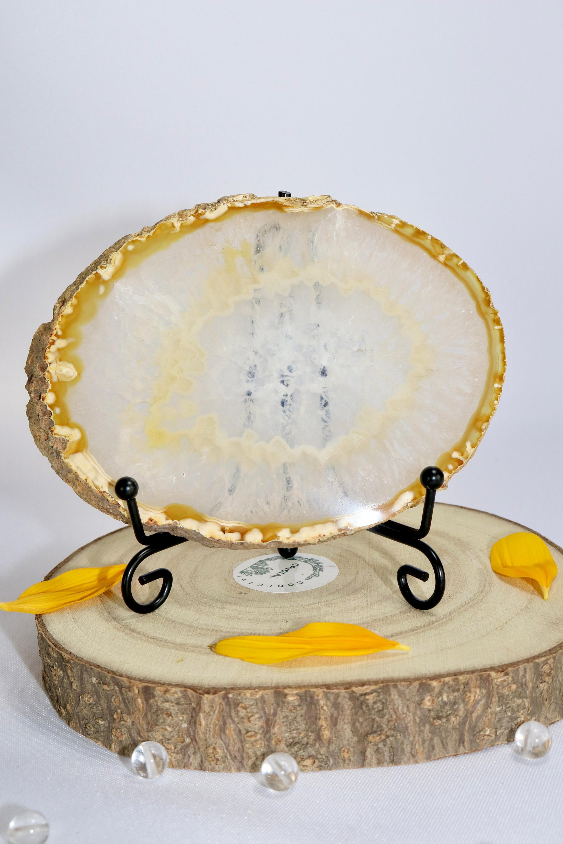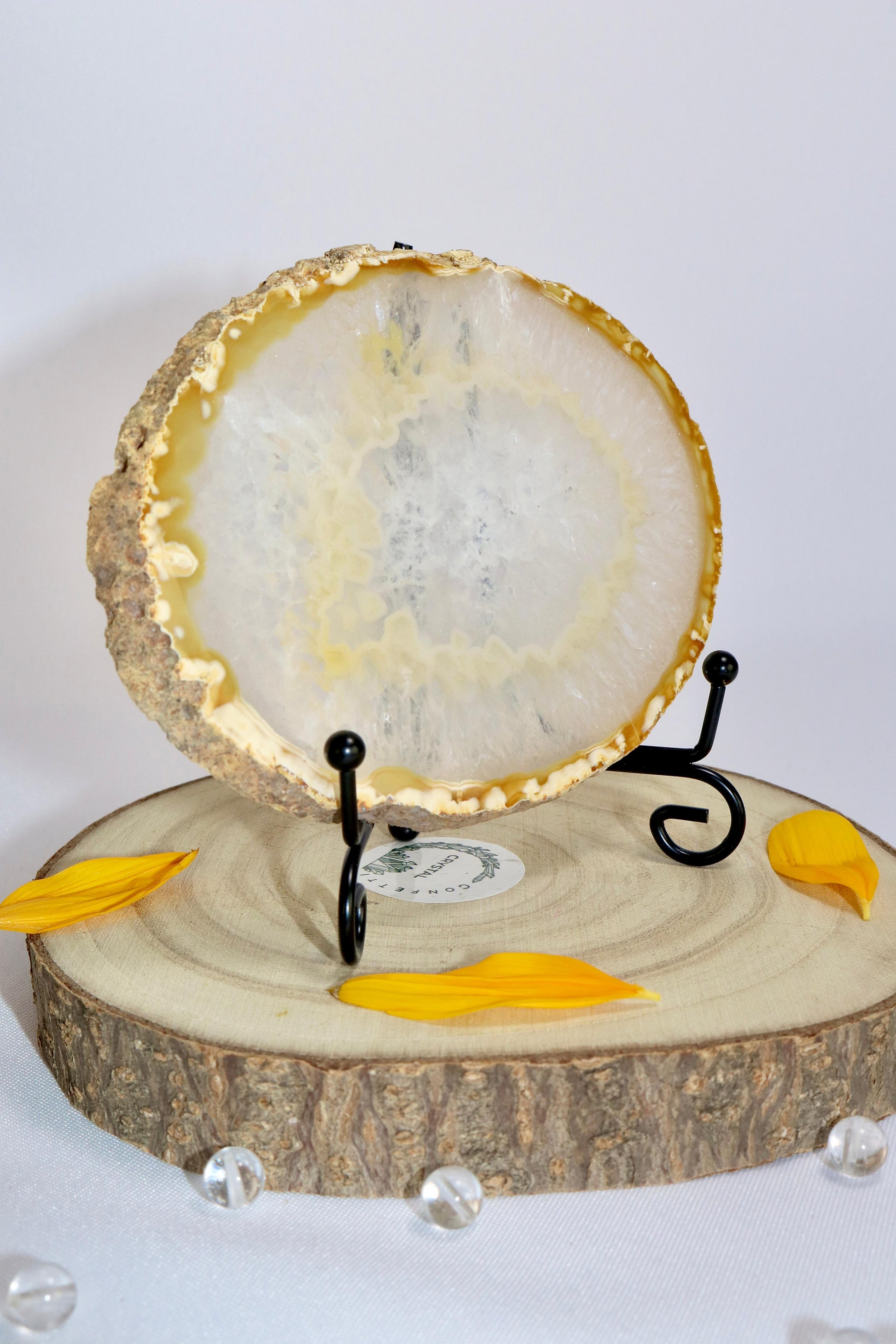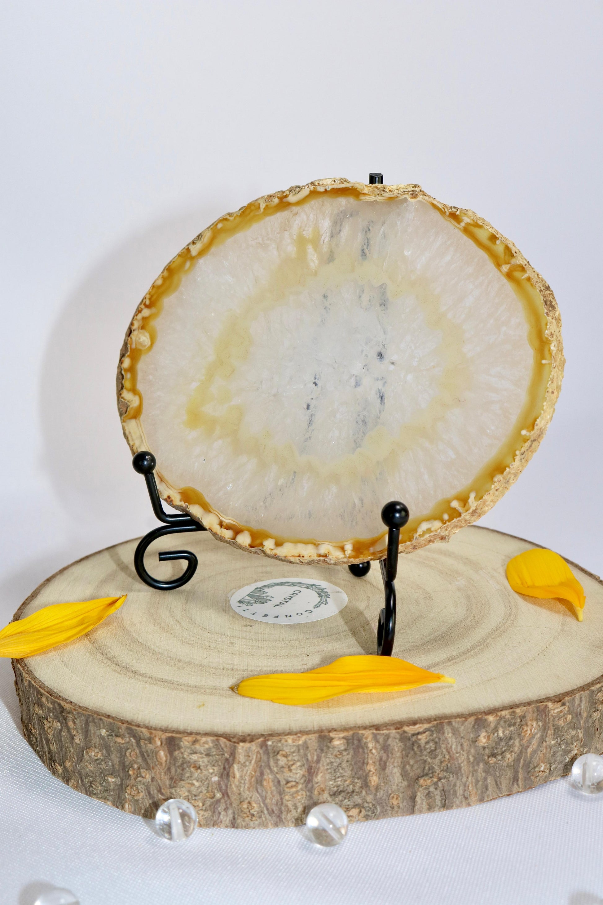 Achat-Scheiben beeindrucken durch ihre feinen Bänderungen und vielfältigen Farbnuancen. Sie eignen sich hervorragend als dekoratives Element, zum Aufstellen oder als natürlicher Blickfang im Raum. Jede Scheibe bringt die Einzigartigkeit des Steins auf besondere Weise zur Geltung.