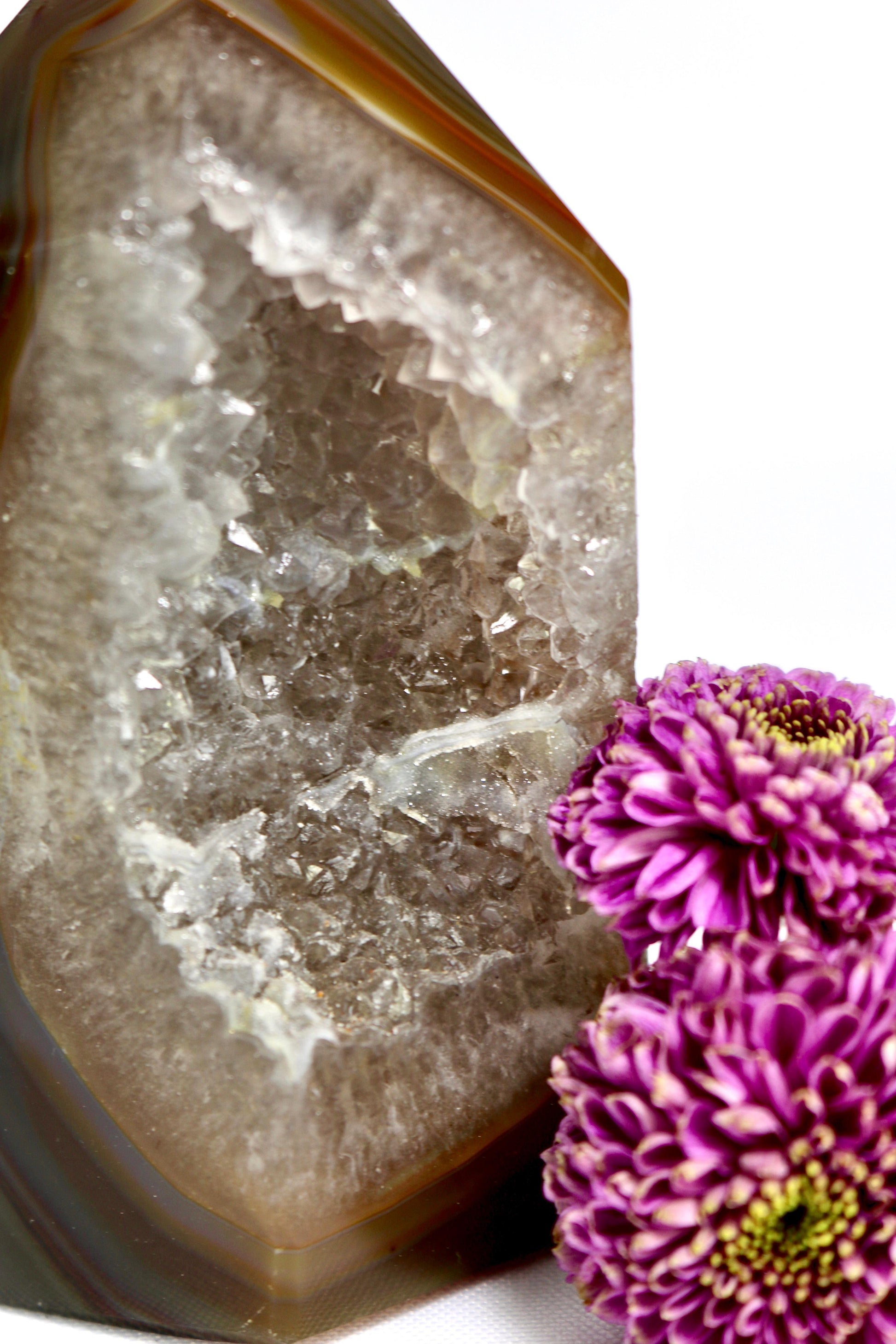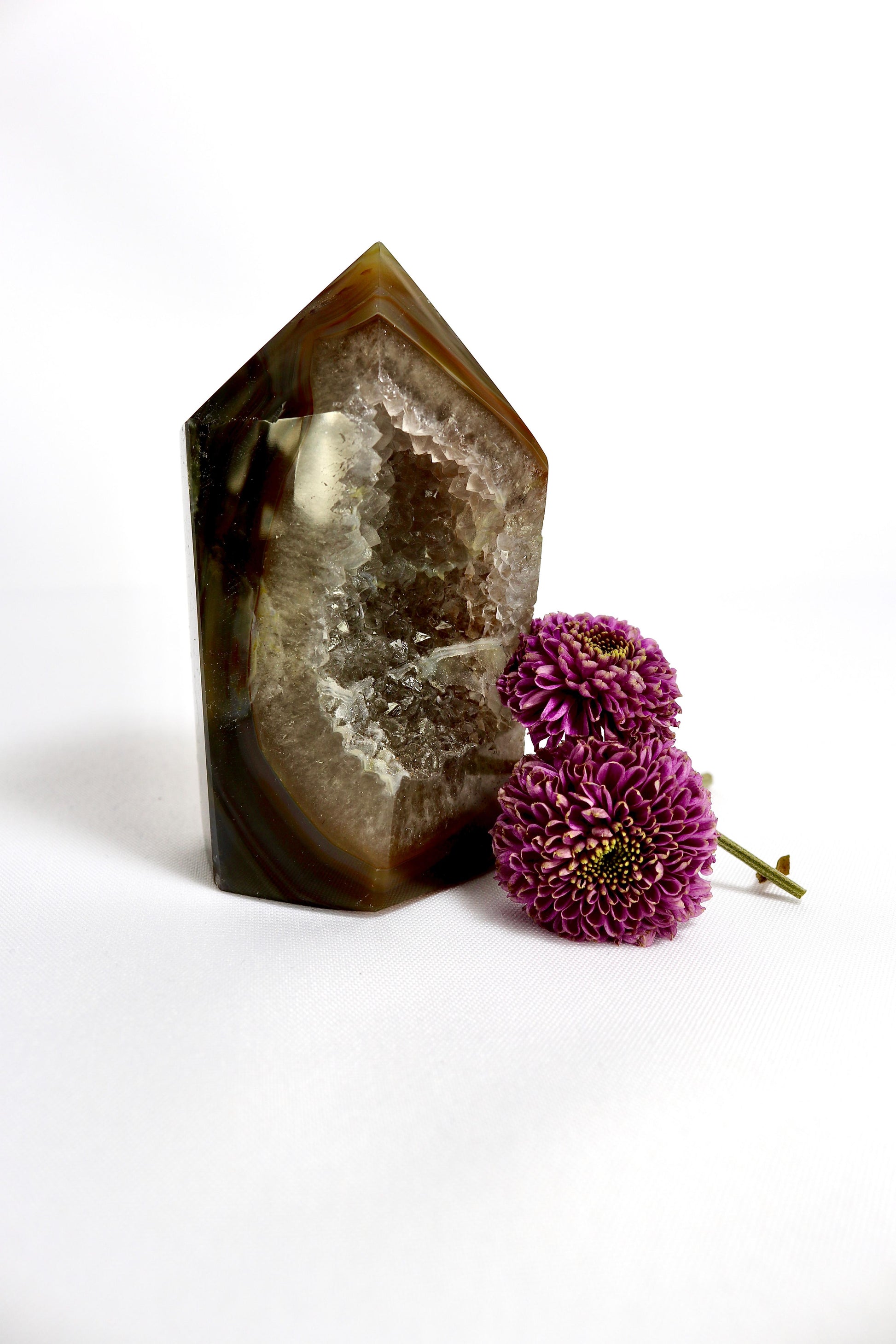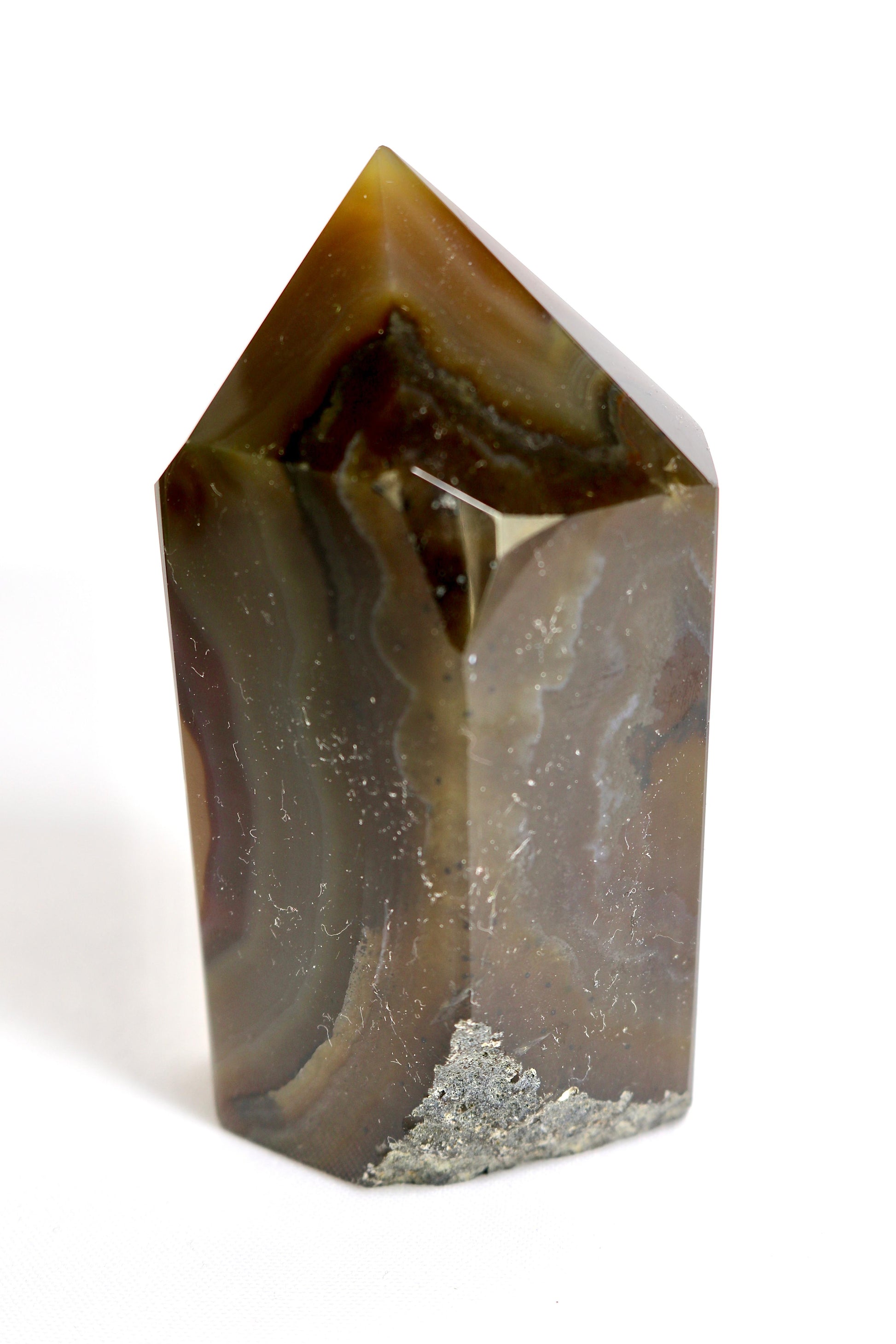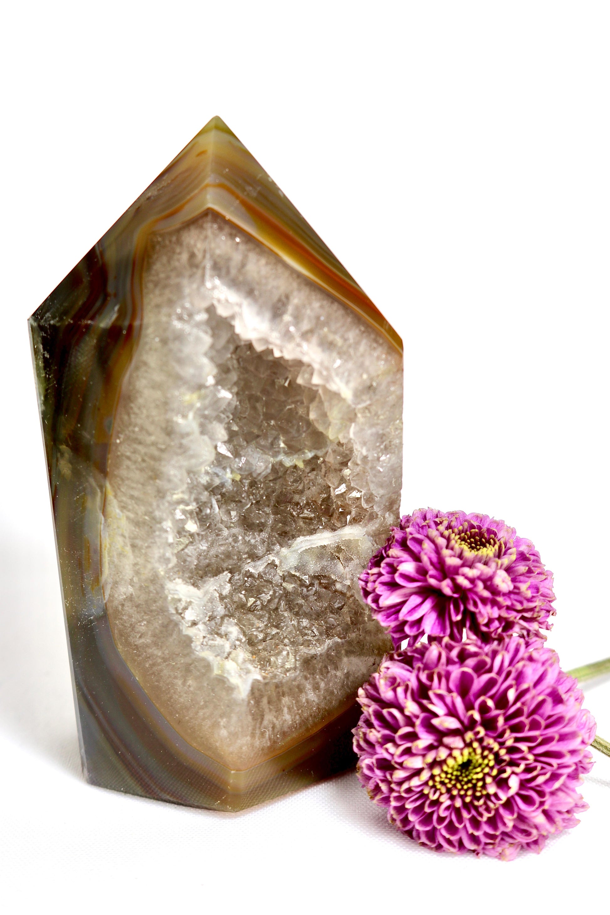Der Achat-Turm überzeugt durch seine natürlichen Bänderungen und die harmonischen Farbverläufe des Steins. Er eignet sich ideal als dekoratives Element, Sammlerstück oder Blickfang in jedem Raum.