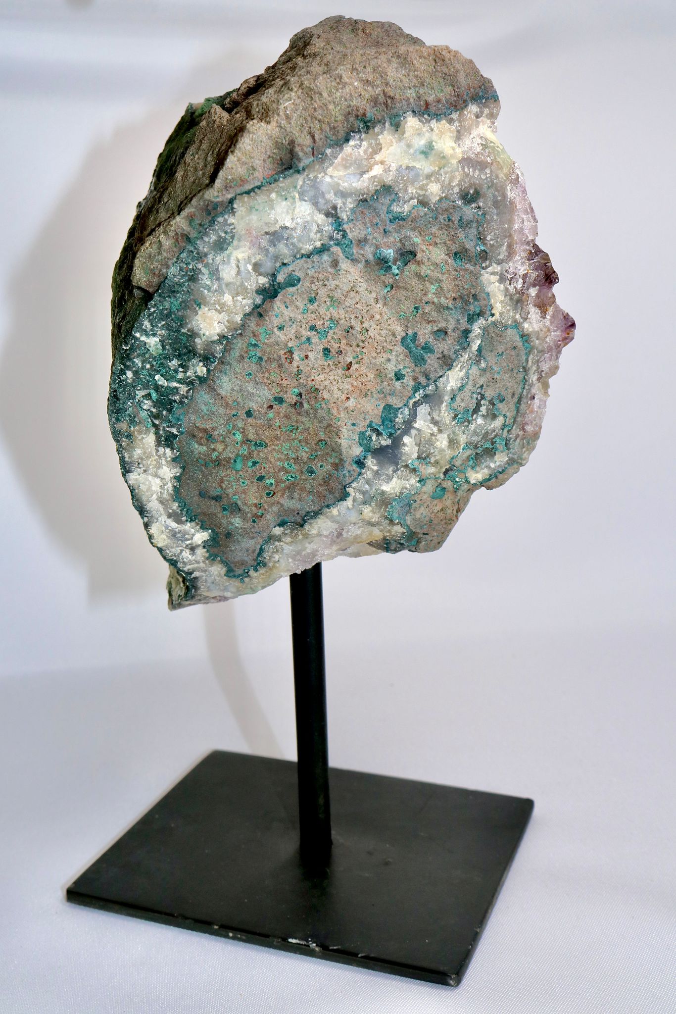 Dieser Amethyst auf schwarzem Stand überzeugt durch seine klare Form und intensive Farbgebung. Das Statement „Peace“ wird durch das elegante Design unterstrichen, sodass das Stück sowohl als dekoratives Element als auch als Blickfang in jedem Raum dient.