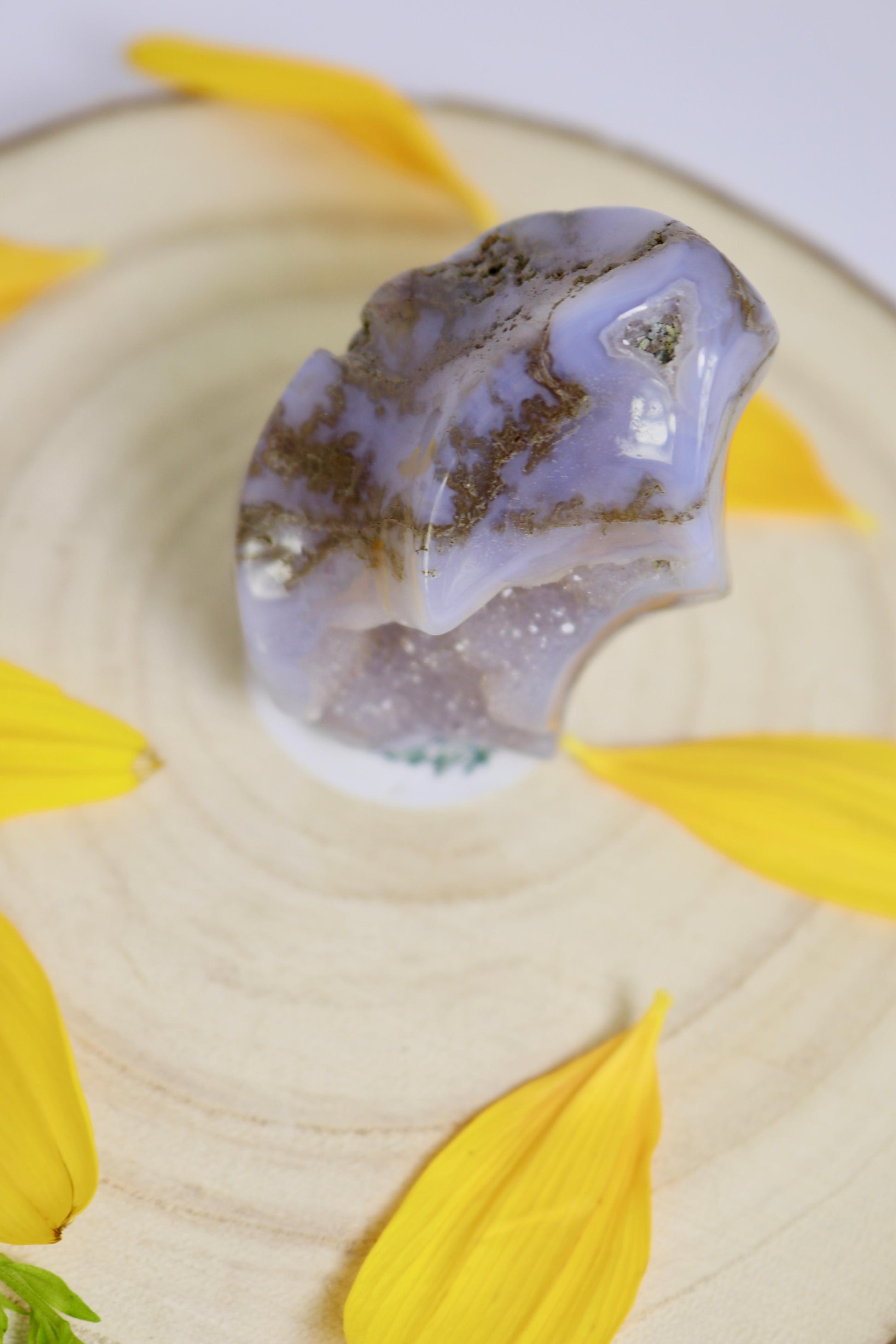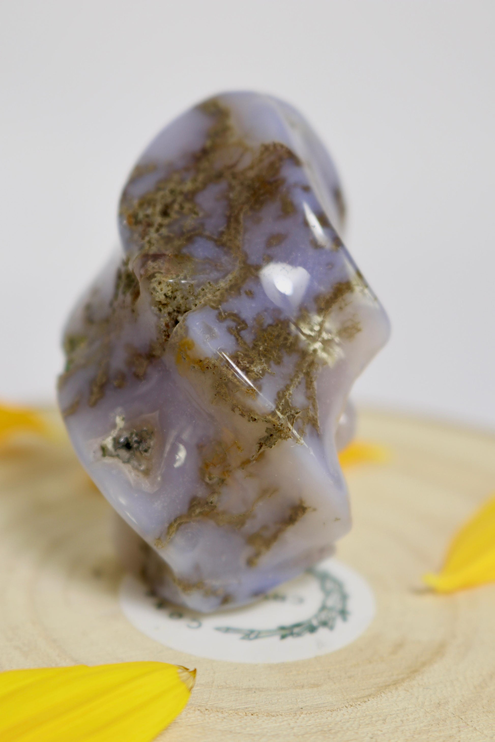 Die Moosachat-Flamme besticht durch seine natürlichen Grüntöne und feinen Musterungen des Steins. Jedes Stück ist handgefertigt und eignet sich ideal als dekoratives Element, Sammlerstück oder kleines Geschenk.