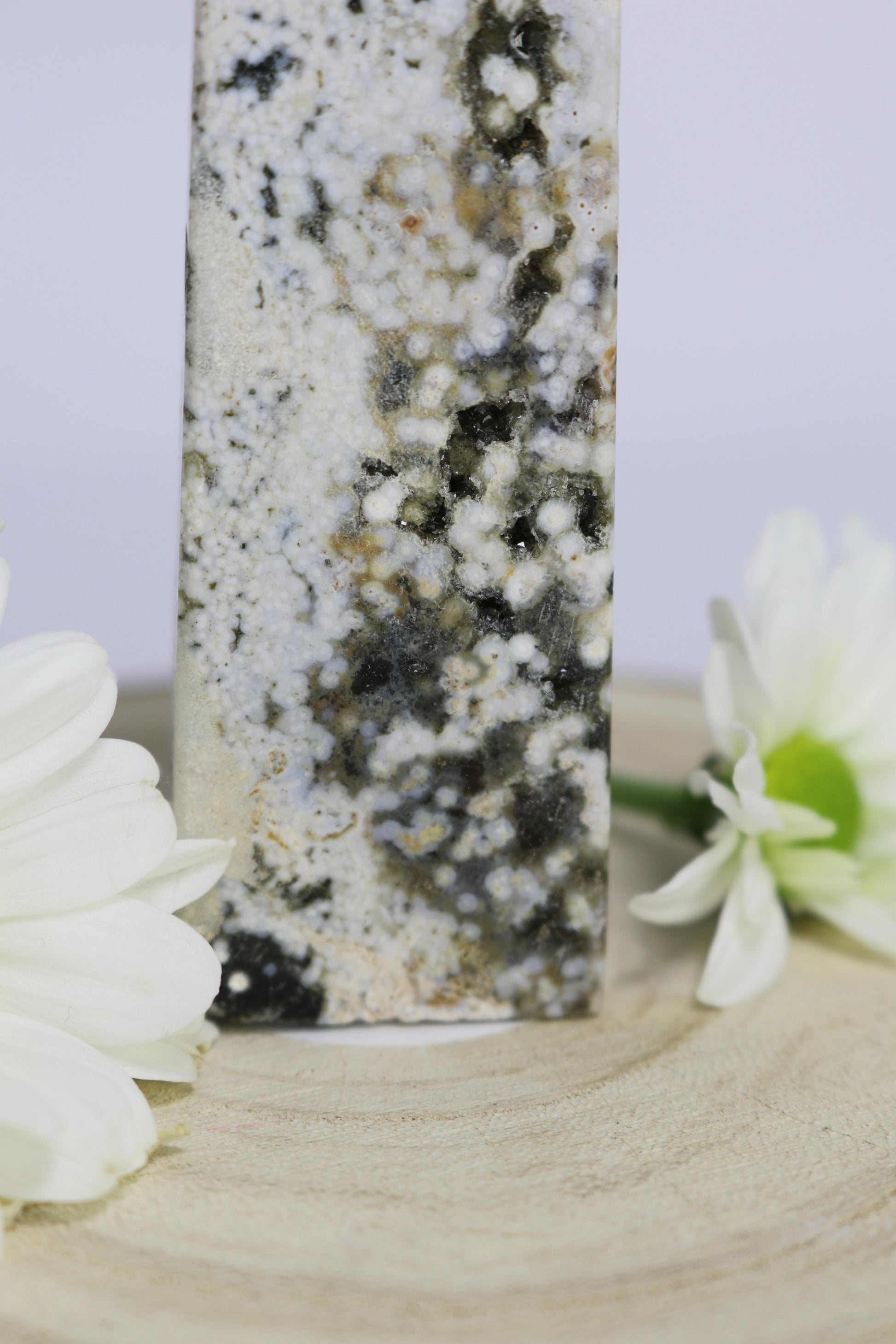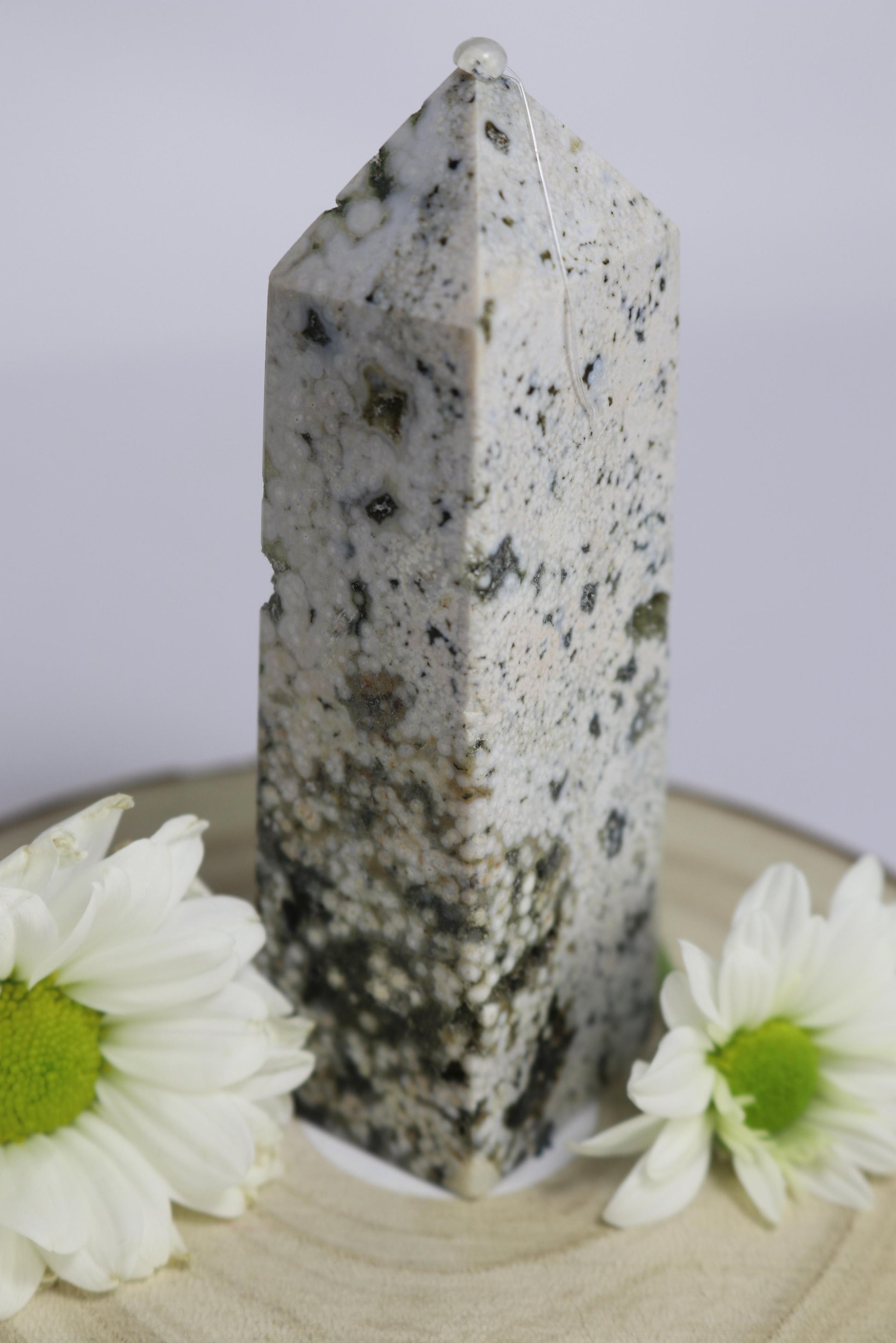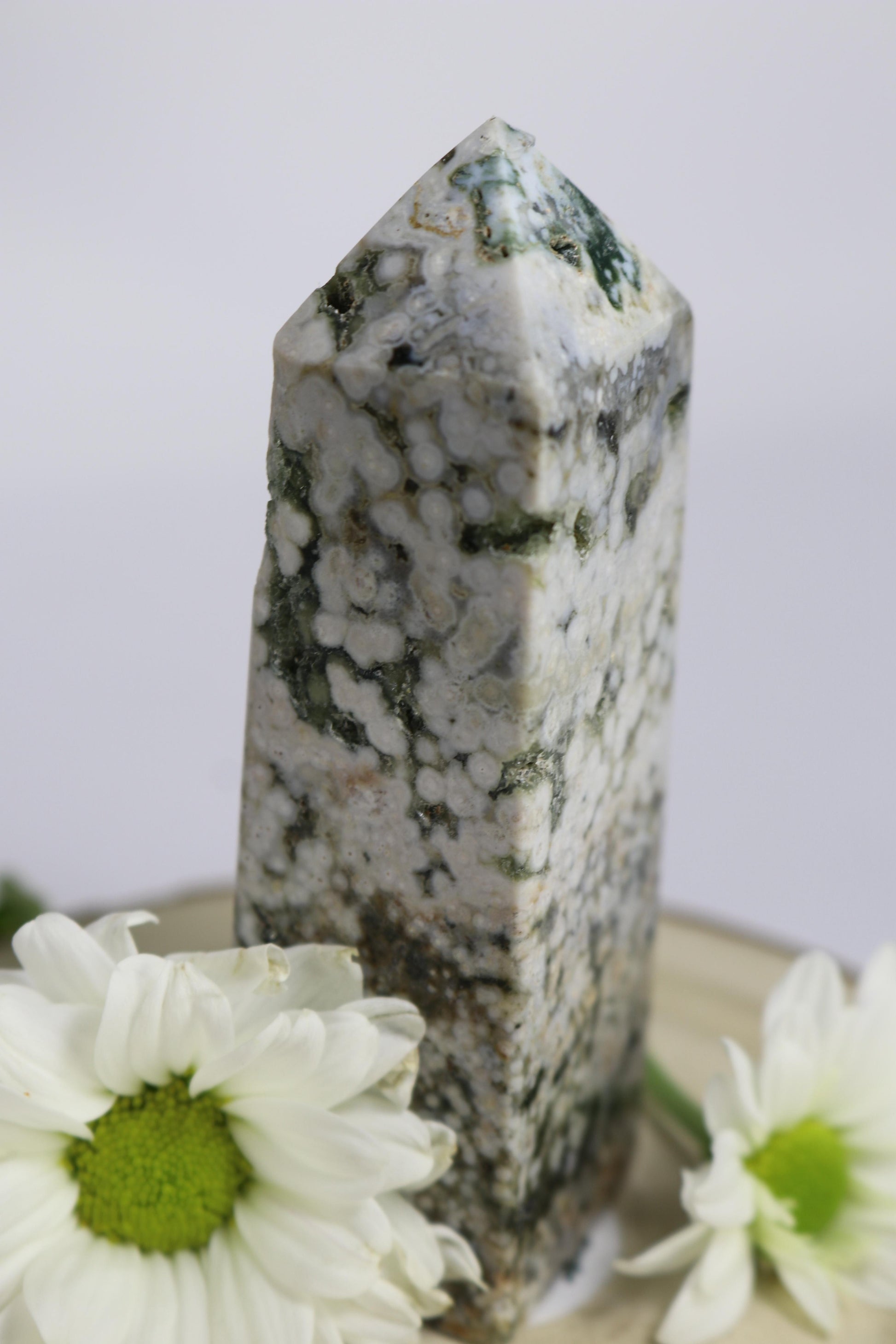 Der Ozean-Jaspis-Turm besticht durch seine einzigartigen Muster und die natürlichen Farbverläufe des Steins. Er eignet sich ideal als dekoratives Element, Sammlerstück oder Blickfang in jedem Raum.