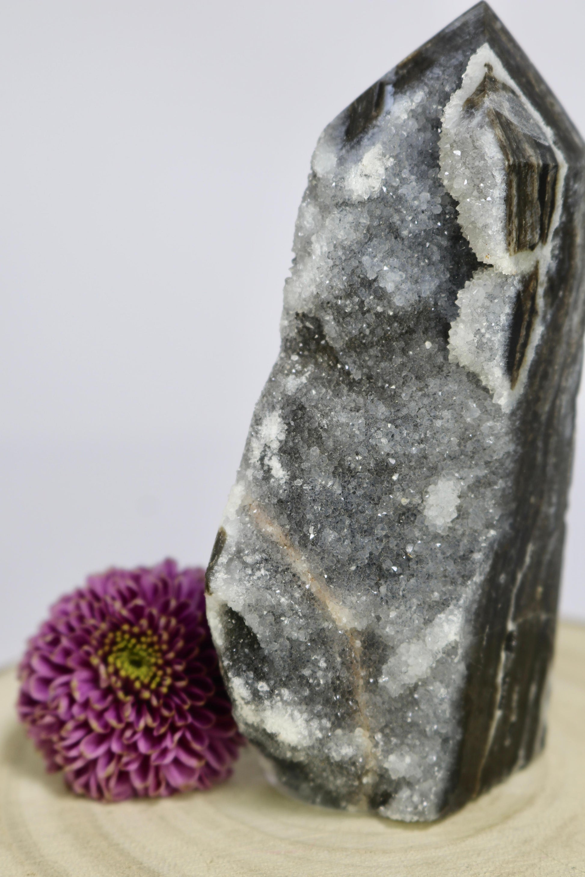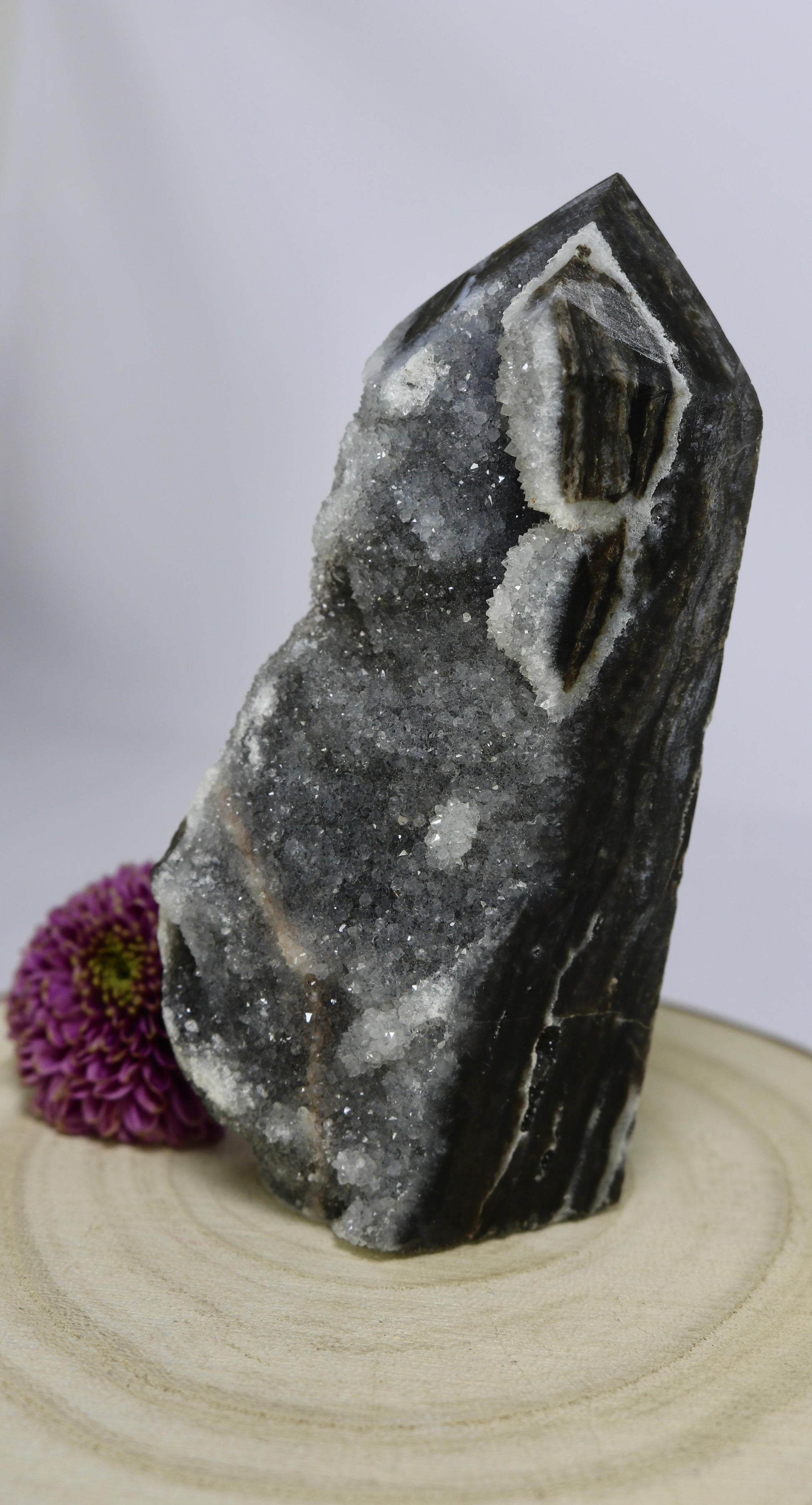 Der Sphalerit-Turm besticht durch seine intensiven Farbnuancen und die natürliche Kristallstruktur. Er eignet sich ideal als dekoratives Element, Sammlerstück oder besonderer Blickfang in jedem Raum.