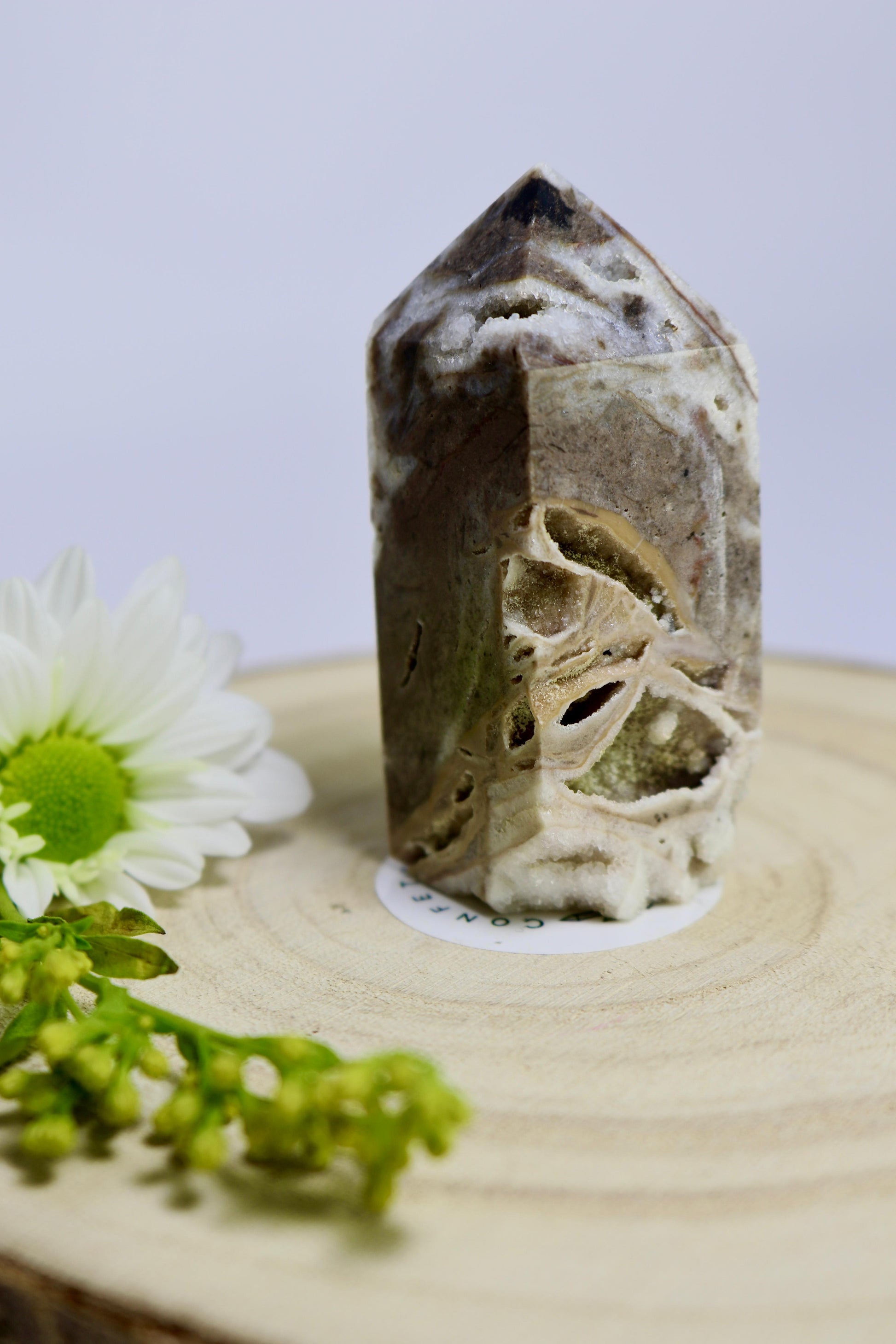 Der Sphalerit-Turm besticht durch seine intensiven Farbnuancen und die natürliche Kristallstruktur. Er eignet sich ideal als dekoratives Element, Sammlerstück oder besonderer Blickfang in jedem Raum.