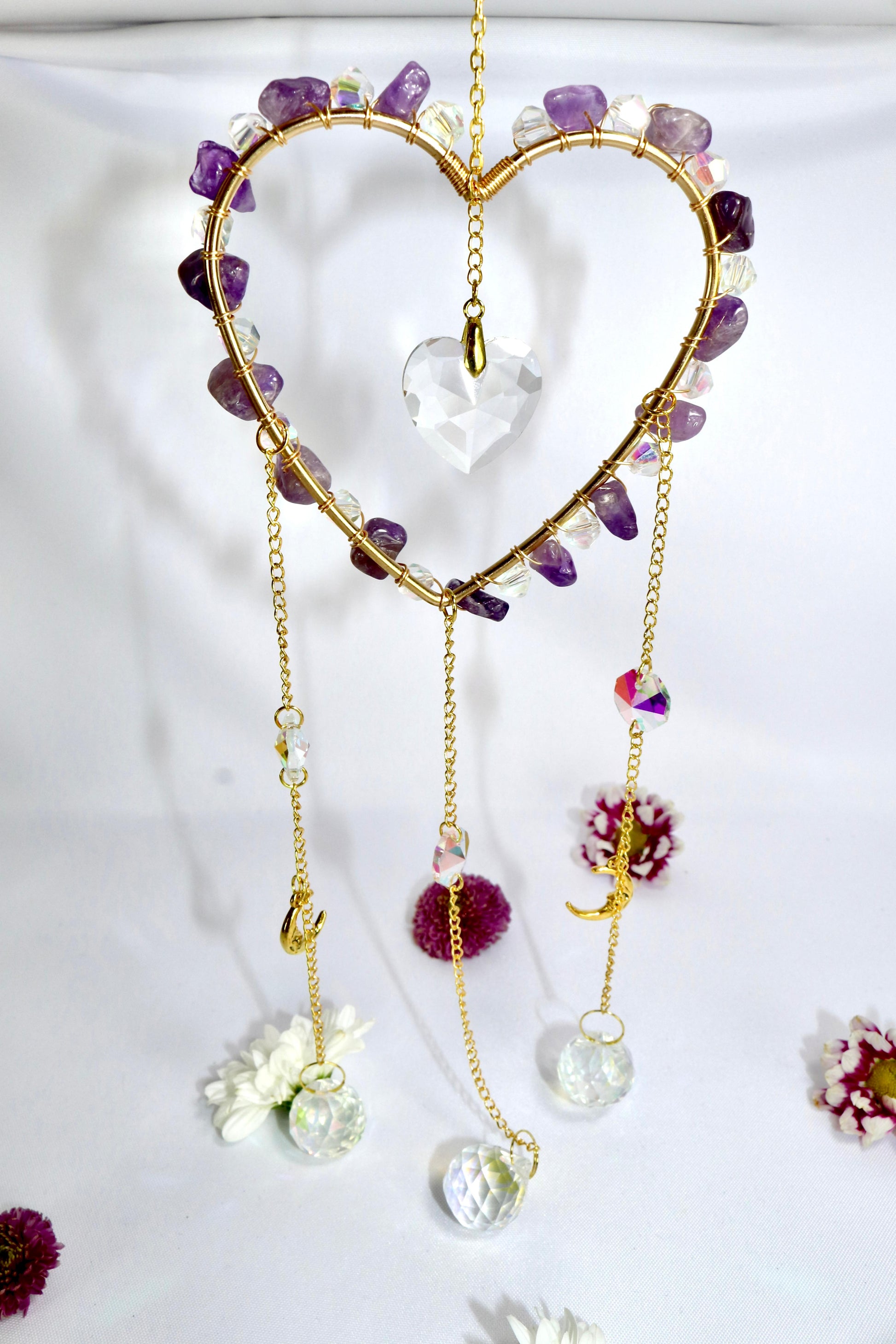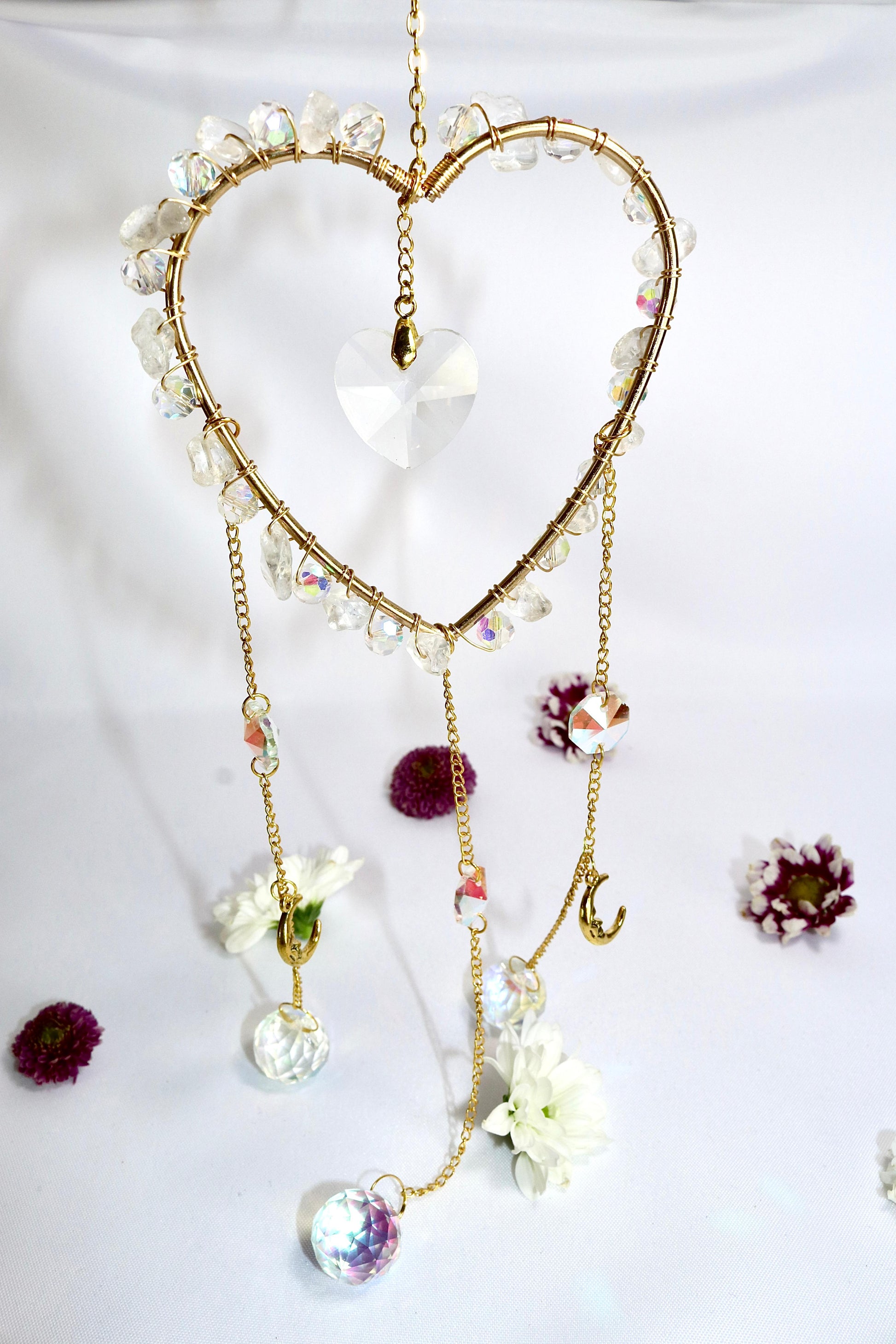 Ein eleganter Sonnenfänger in Herz- und Kreisform. Durch den facettierten Schliff bricht er das einfallende Licht in vielfältige Regenbogenfarben und sorgt so für besondere Lichtspiele in deinem Zuhause. Ob am Fenster, auf dem Balkon oder als dekorativer Akzent im Raum.